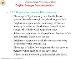 What is brightness adaptation. Of ECE Canara Engineering College 9591. APPARATUS Thepresent apparatus wasdesigned to provide adapt and testy fields ofanybrightness fromthose in the neighbourhood ofthe absolute threshold ofthe darkadaptedeye upto a maximumof4000 equiv. 213 Brightness Adaptation and Discrimination Because digital images are displayed as a discrete set of intensities the eyes ability to discriminate between different intensity levels is an important con-sideration in presenting image-processing resultsThe range of light intensity lev-.