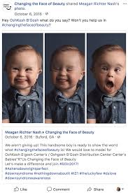 FacebookMeagan Richter Nash We arent giving up says Meagan Richter Nash in a Facebook post shared on the Changing the Face of Beauty page. October 21 2016 840 am. When her post went viral OshKosh Bgosh contacted her and wanted to meet with the family.