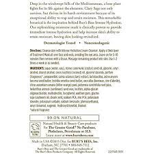 Essential Burts Bees Kit. Tube 2 Infuses skin with Clary Sage that locks in moisture. Extracts from plants and flowers help to promote healthy skin and effectively keeps the skin hydrated revitalized and radiant. Its the 5-minute dose of soothing care your self-care regimen needs. All Rights Reserved. Limpia tu rostro con Intense Hydration Cream Cleanser. After cleansing skin apply a thick layer of hydrating facial mask all over your face and neck avoiding the eye area. Revitalize dry tired skin with Burts Bees Intense Hydration Mask. Remove with a tissue then massage remaining beauty product into your skin.