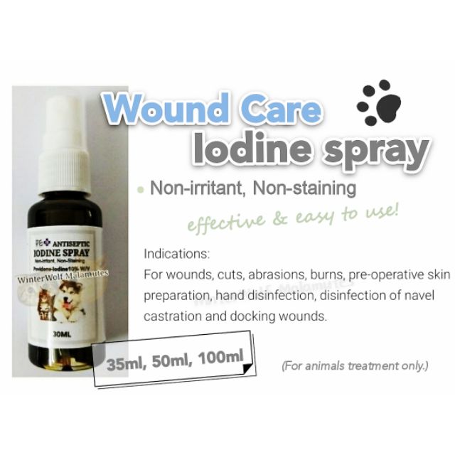 Purchase Povidone Iodine from your local pharmacy and NOTE DO NOT USE regular Iodine it must be Povidone Iodine. Dogs Cats Rodents Birds and Reptiles. Iodine spray - 5gL Iodine as povidone-iodine Antiseptic spray for the treatment and prevention of skin infections For use in topical infections wounds and treatment of ringworm. For ringworm and foot rot. Cattle swine horses and sheep. Tamed iodine or povidone-iodine retains the antiseptic properties of tincture but. Soak your dogs paws for about 60-90 seconds then dry them off with a towel.