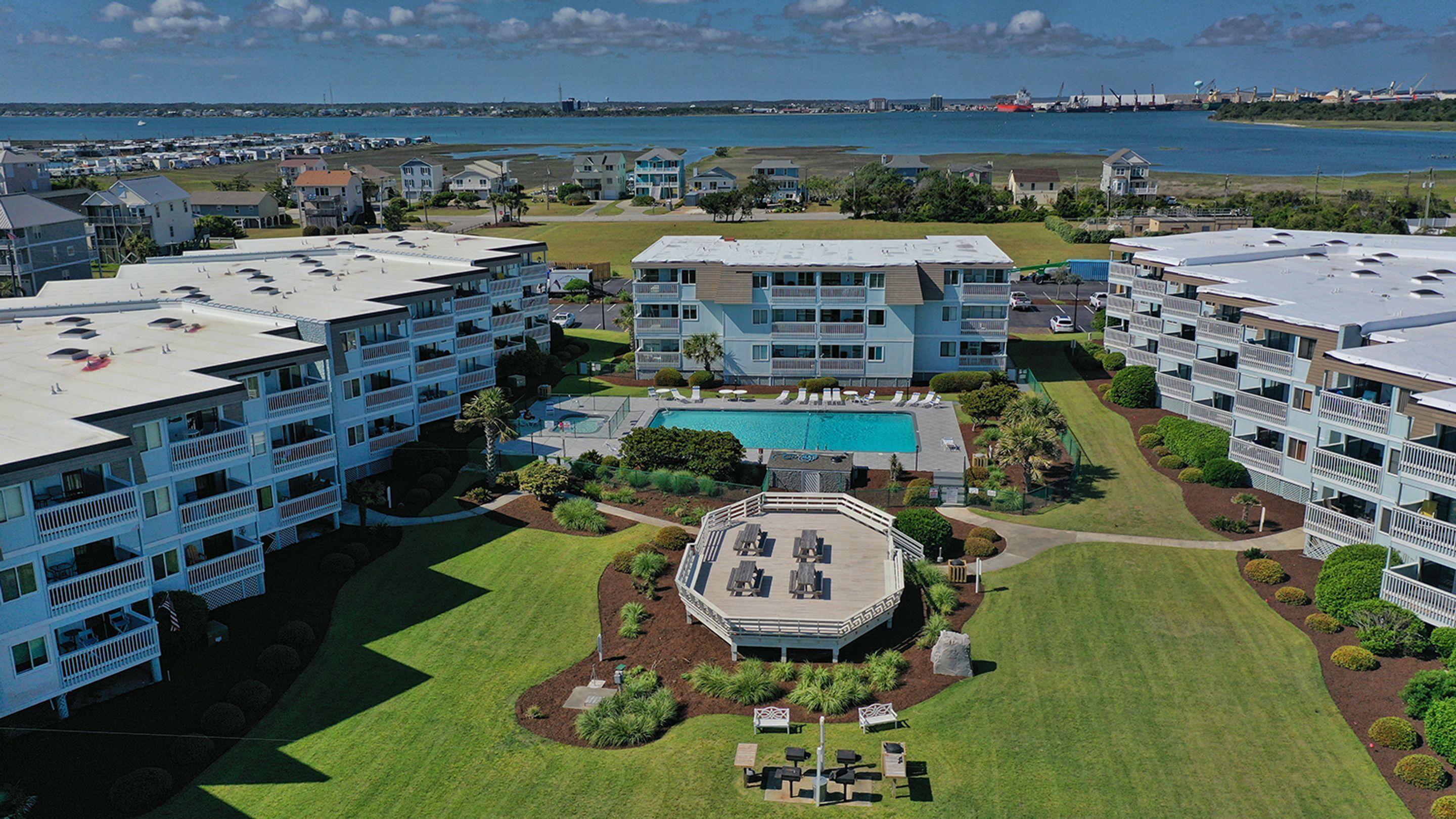 Seaspray is an oceanfront complex with a large interior courtyard area with an outdoor swimming pool with kiddie pool charcoal grills and a large sun deck. 1901 W Fort Macon Rd.