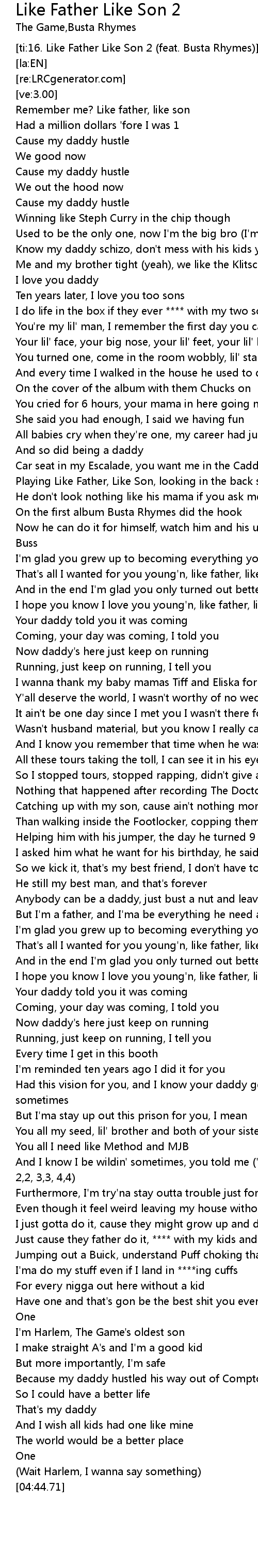 My little man your day is coming coming your day is coming I tell you. Thats all I wanted for you youngn like Father like Son. Like Father Like Son album was released in 2011 and featured titles like Wild Thing Maniac and Papa Was a Rollin Stone from Tone-Loc Michael Sembello and The Temptations. You know im hot i get it poppin so that say. Oh oh oh oh oh. The movie stars Martin Lawrence. Therefore caution is recommended.